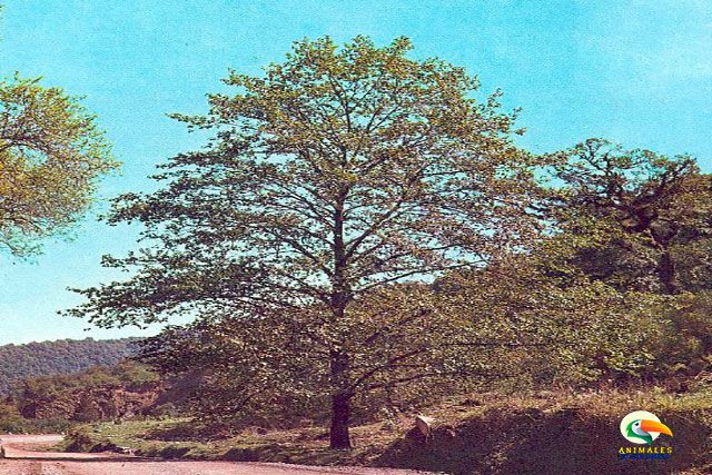 Su altura puede alcanzar los 30 metros, mientras que su tronco suele ser recto y robusto. Sus hojas son anchas y ovaladas, y sus bordes dentados les dan un tono verde vibrante.